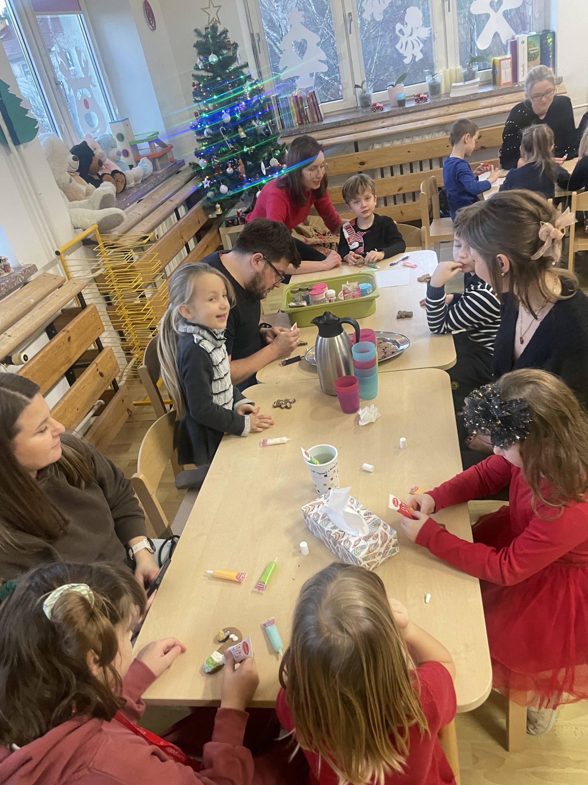 Podczas warsztatów uczestnicy mieli okazję własnoręcznie udekorować pierniki, które potem stały się pysznymi, świątecznymi upominkami. Wspólne zdobienie ciasteczek było doskonałą okazją do rozmów i uśmiechu, a efekty pracy dzieci i rodziców z pewnością ozdobią świąteczne stoły.