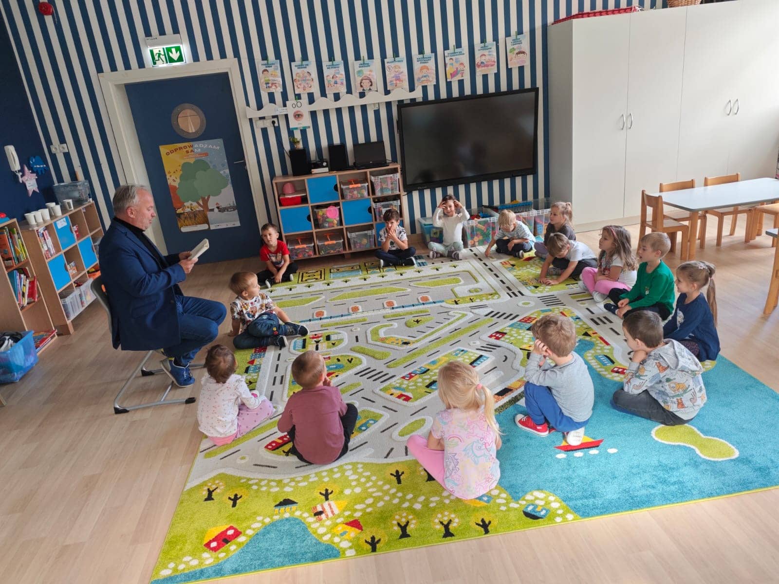 Mieliśmy ogromną przyjemność gościć wśród czytających samego Dyrektora – pana Krzysztofa Jankowskiego, który z zaangażowaniem i uśmiechem przeniósł dzieci w świat bajek.